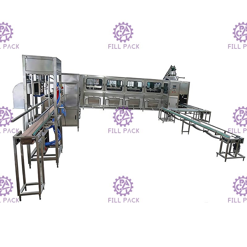 2Esta máquina de produção de água de galão integra a máquina de lavar garrafas, o preenchimento e o selante numa única unidade.