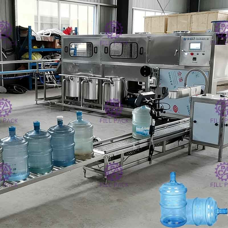 A máquina de enchimento de garrafas de água de 5 galões é integrada para enchimento e tampa de lavagem.