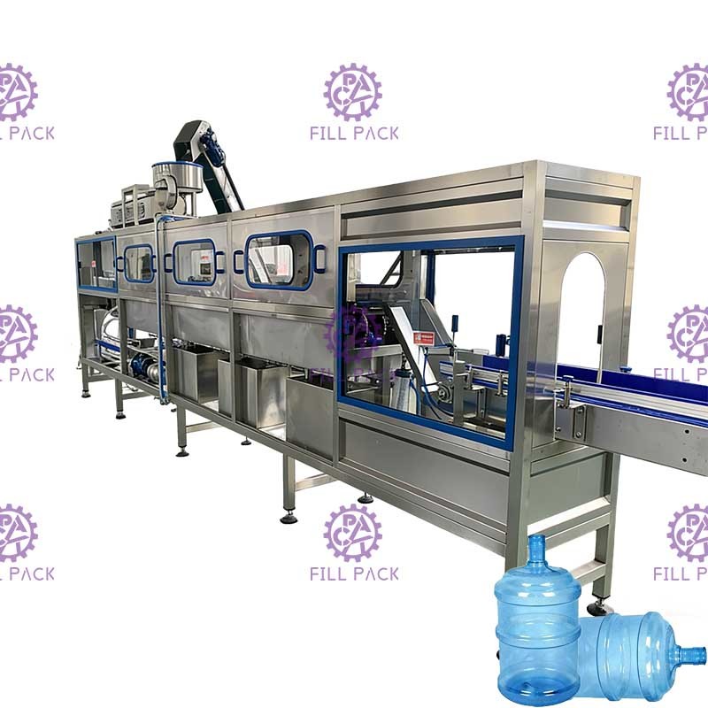 A linha de enchimento de barris é especial para a produção de água potável em barris de 3 e 5 galões.