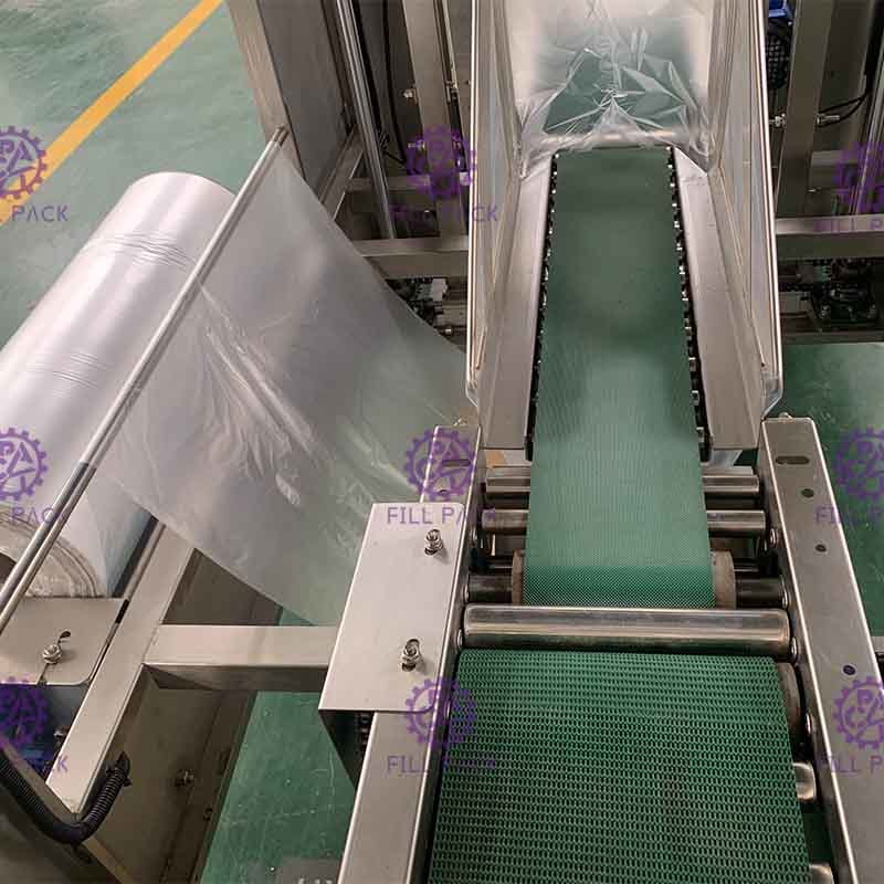 Trata-se principalmente de um equipamento concebido para a embalagem automática em sacos da água finalizada na linha de produção de garrafas de 5 galões para manter o barril limpo e reduzir o desgaste.A garrafa de galão pode entrar e sair da máquina sem a necessidade de pessoal para completar todo o processo, A eficiência de embalagem é alta, a operação mecanizada reduz os custos de mão-de-obra; a velocidade de embalagem pode atingir o máximo de 2200BPH, o que pode economizar de dois a quatro trabalhadores e reduzir muito os custos dos sacos.