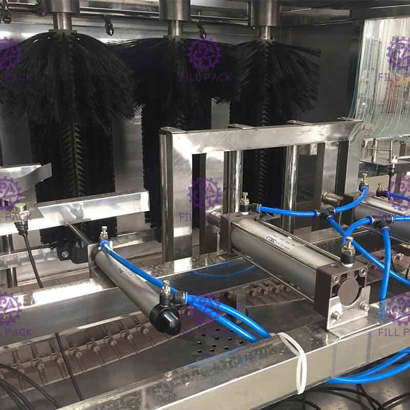 - A máquina de lavar garrafas, a máquina de enchimento e a máquina de vedação são integradas numa única máquina;