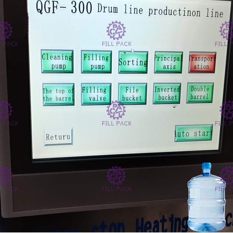 Máquina de Enchimento de Água 300BPH 18,9l 5 Galões Controle Automático PLC com tela sensível ao toque