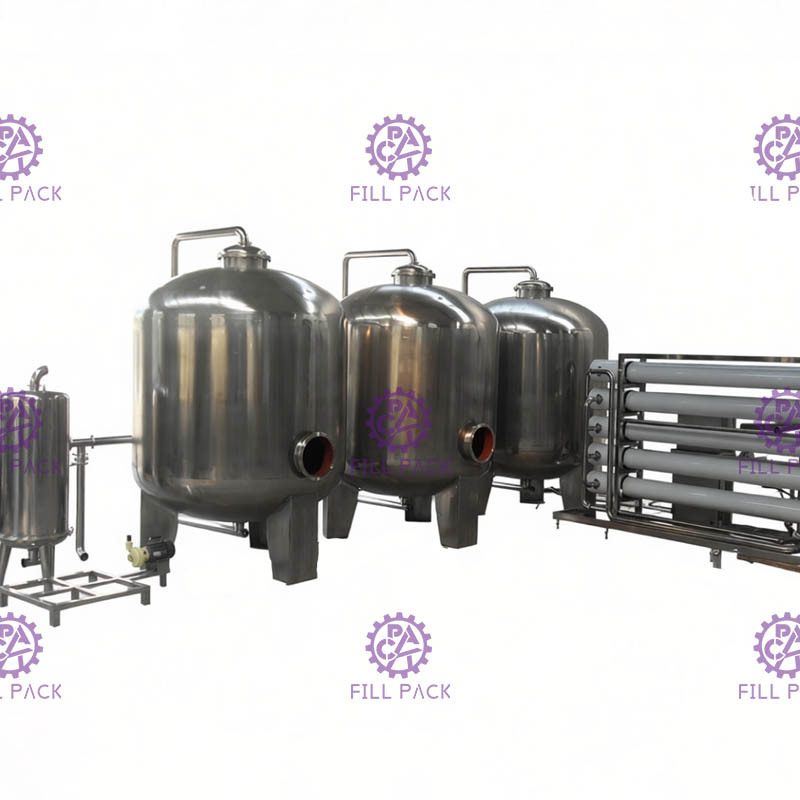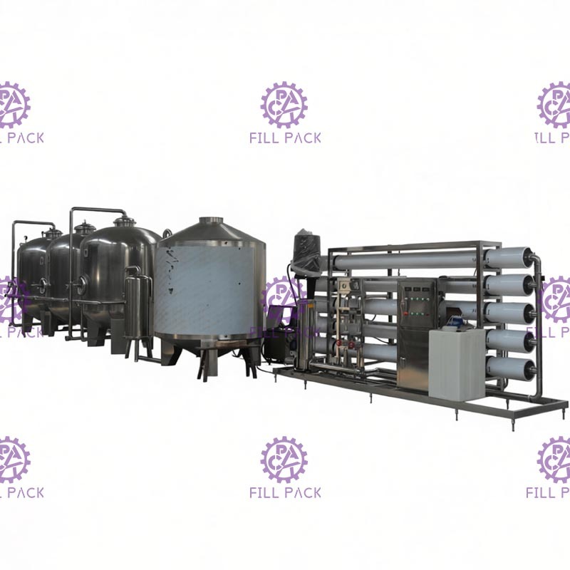 O equipamento de tratamento de água da UF incluiu os pré-filtros, o sistema de osmose reversa, o esterilizador de raios ultravioleta e os tanques de armazenamento de água.